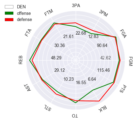 DEN Published March 19, 2016 at 437 × 388 in Visualizing NBA Summary Statistics Using Radar Plots ← Previous Next →