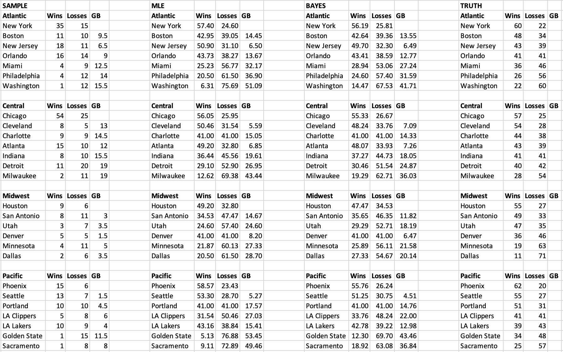 BAYES: Bayes Estimate of Team Record from Sampled Games