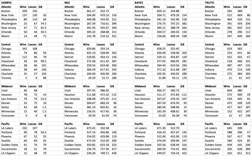 BAYES: Bayes Estimate of Team Record from Sampled Games