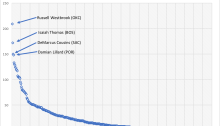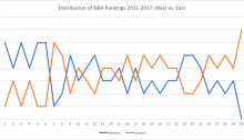 In Dean Oliver’s Four Factors, we are interested in effective field goal percentage, offensive rebounding percentage, free-throw rate, and turnover percentage. If a team cannot dominate a couple of these categories, then it will be unlikely for that team to win. For instance, let’s consider effective field goal percentage. The Golden State Warriors have posted a .558 eFG% while limiting their…